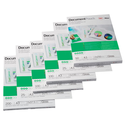 - GBC 41660E, These A3 laminating pouches serve to protect frequently handled documents, with a tough matt laminate that adheres to both sides of pages, minimising glare & enabling ‘writeability’. GBC Laminating Pouches A3 Matt 2x 75 Micron Pack of 100